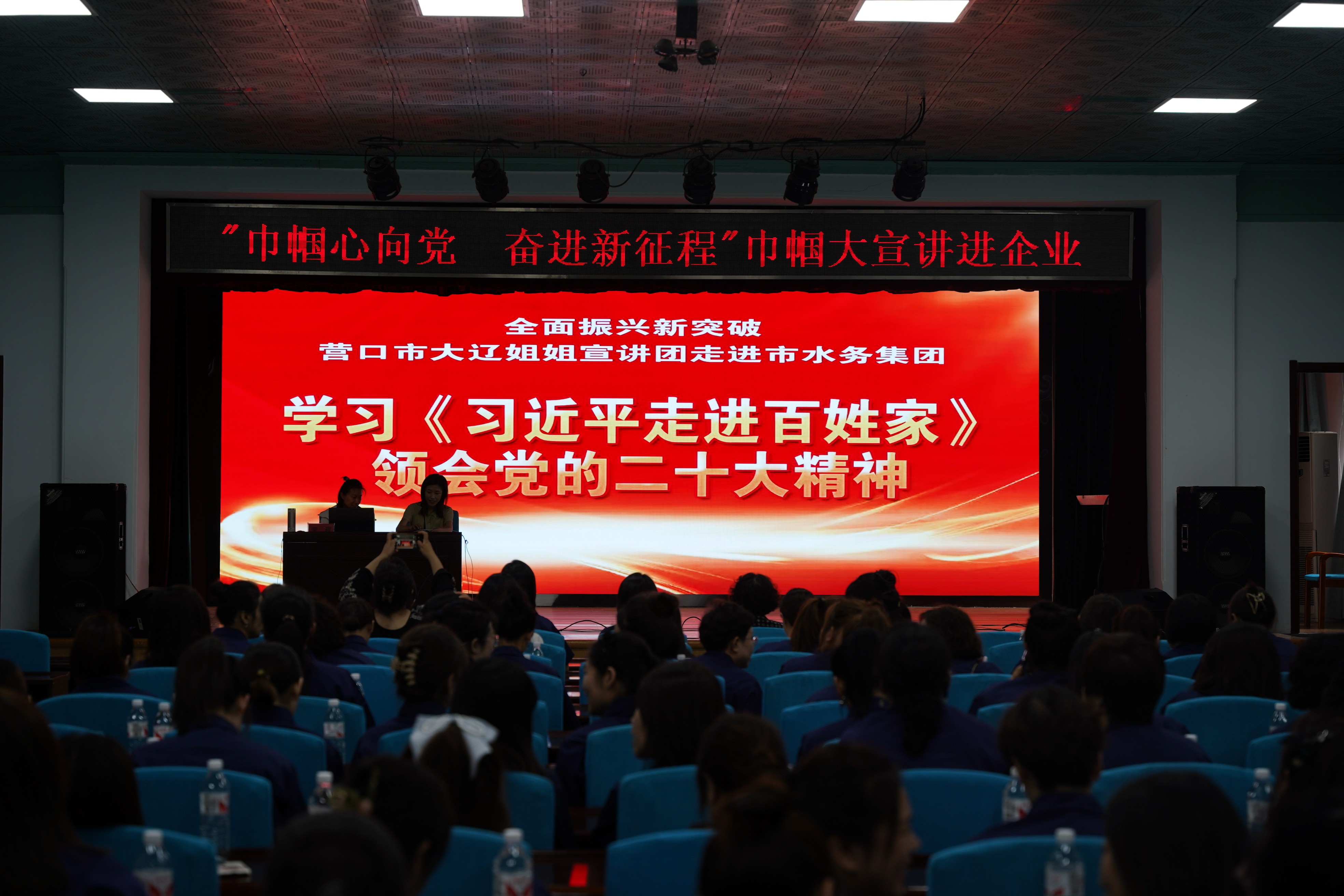 為深入學(xué)習(xí)宣傳貫徹黨的二十大精神,做好學(xué)習(xí)貫徹習(xí)近平新時(shí)代中國(guó)特色社會(huì)主義思想主題教育預(yù)熱升溫,6月29日上午,水務(wù)集團(tuán)與婦聯(lián)開展共建活動(dòng),邀請(qǐng)大遼姐姐宣講團(tuán)成員、營(yíng)口市委黨校李程老師走進(jìn)企業(yè)開展“巾幗心向黨 奮進(jìn)新征程”大宣講,100余名女職工參會(huì)。